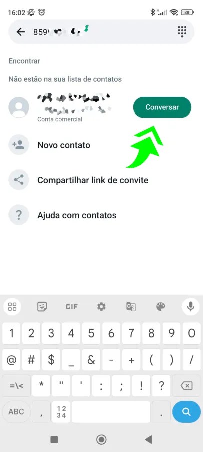 Pronto! Agora, você já pode iniciar um chat com um número de fora da sua agenda de contatos.